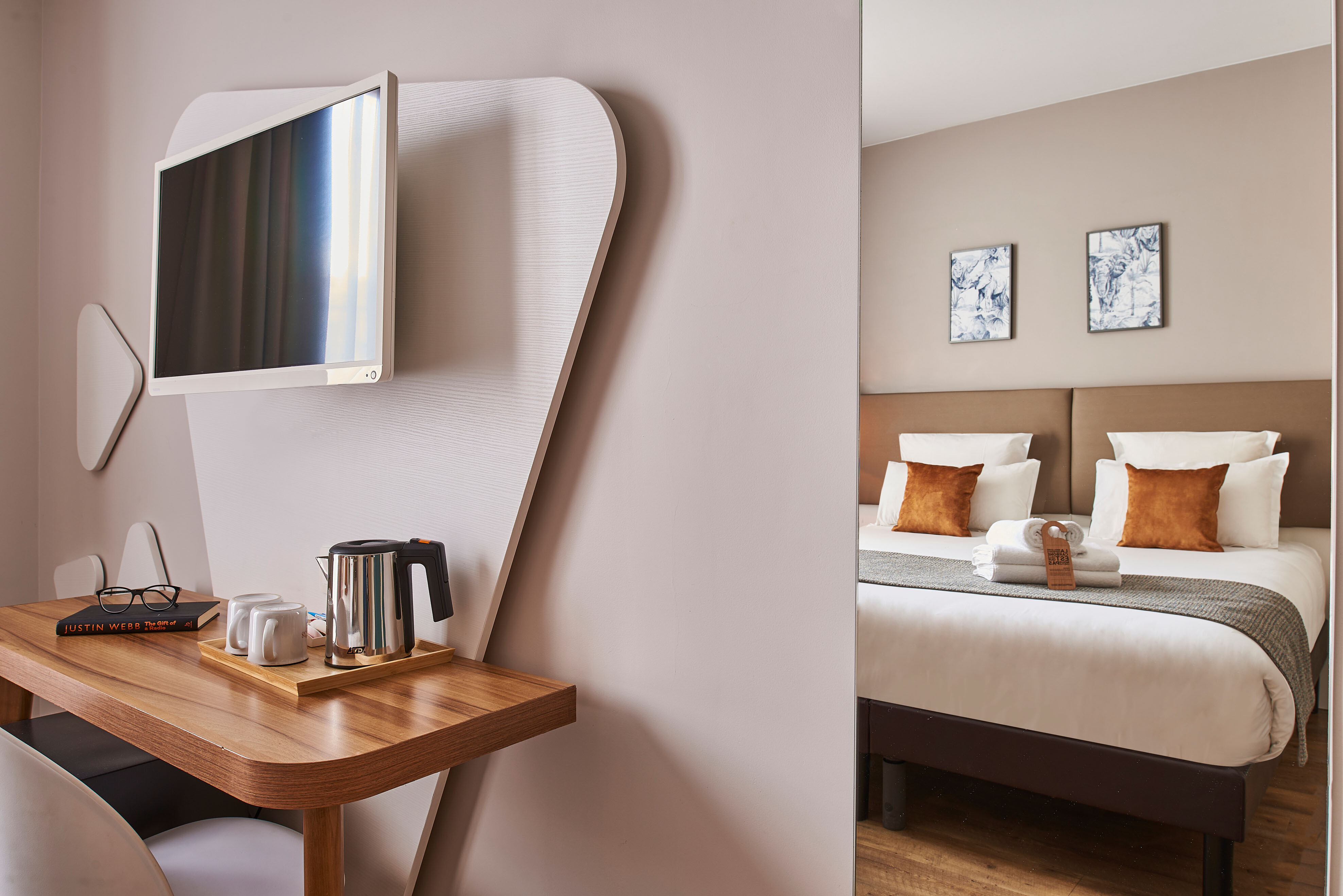 Designed for solo travellers, this room combines sobriety and comfort, offering a peaceful cocoon in the heart of Paris.
